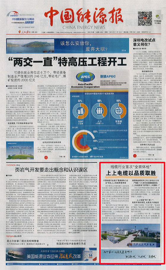 《機電商報》:上上電纜勇奪“雙料冠軍” 企業競爭力彰顯