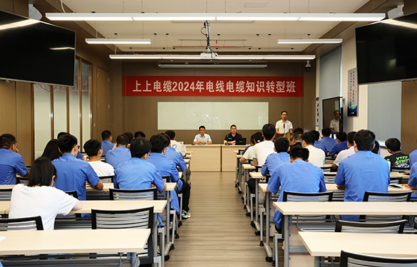 7月29日,江蘇上上電纜集團2024年電線電纜知識轉型班順利開班。本次培訓主要針對技術、生產、裝備上新進本科及以上學歷員工,涉及《電介質物理》、《電纜外貿英語》、《電氣絕緣測試技術》、《電力電纜》、《電纜材料》、《電纜工藝》等12門課程256課時,歷時兩個月。哈爾濱理工大學電纜專業教授及集團內部業務骨干受邀擔任此次轉型班的授課老師,對轉型班學員進行系統培訓。集團總經理助理狄洪杰出席開班儀式并講話。