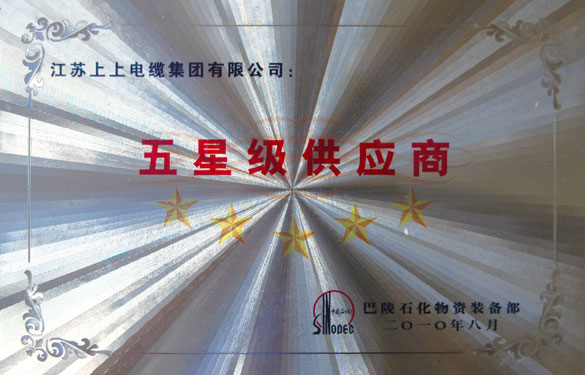 日前,憑著優質的產品質量、及時交貨能力及良好的售后服務,江蘇上上電纜集團再次被巴陵石化物資裝備部授予“優秀供應商”及“五星級供應商”稱號。