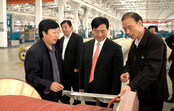 3月29日,南陽(yáng)市委常委、鄧州市委書記姚龍其率領(lǐng)鄧州市黨政代表團(tuán)一行來(lái)江蘇上上電纜集團(tuán)參觀考察。溧陽(yáng)市委書記盛建良陪同考察。集團(tuán)董事長(zhǎng)、總經(jīng)理丁山華,常務(wù)副總經(jīng)理丁志鴻、副總經(jīng)理滕峰等陪同姚書記一行參觀了西廠區(qū)特種電纜生產(chǎn)基地。