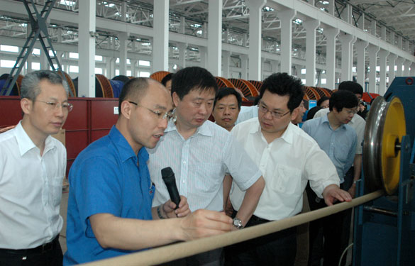 在常務(wù)副總經(jīng)理丁志鴻的陪同下,與會(huì)領(lǐng)導(dǎo)、專(zhuān)家參觀了上上集團(tuán)超高壓電纜生產(chǎn)基地。