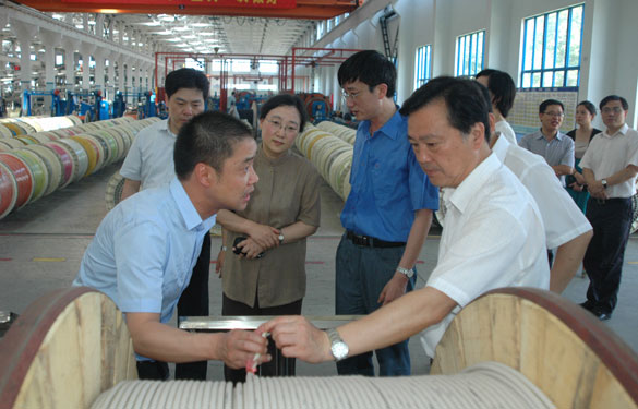 7月5日,江蘇省政府副秘書長朱步樓率領(lǐng)省政府科技創(chuàng)新工程督查組一行來江蘇上上電纜集團(tuán)調(diào)研,常州市政府副秘書長、市科教城管委會主任陳建新、溧陽市副市長劉敏等領(lǐng)導(dǎo)陪同調(diào)研。集團(tuán)常務(wù)副總經(jīng)理丁志鴻、總工程師李斌等陪同督查組一行參觀了西廠區(qū)特種電纜生產(chǎn)基地。